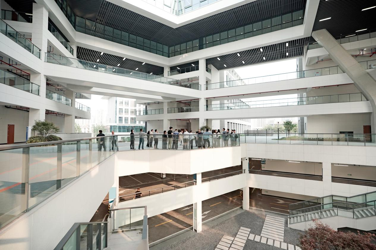 调研团一行实地参观工科实验大楼,彭华明详细介绍了项目建设背景、设计理念、功能布局。项目于2024年12月竣工,2025年4月开启分阶段交付工作。