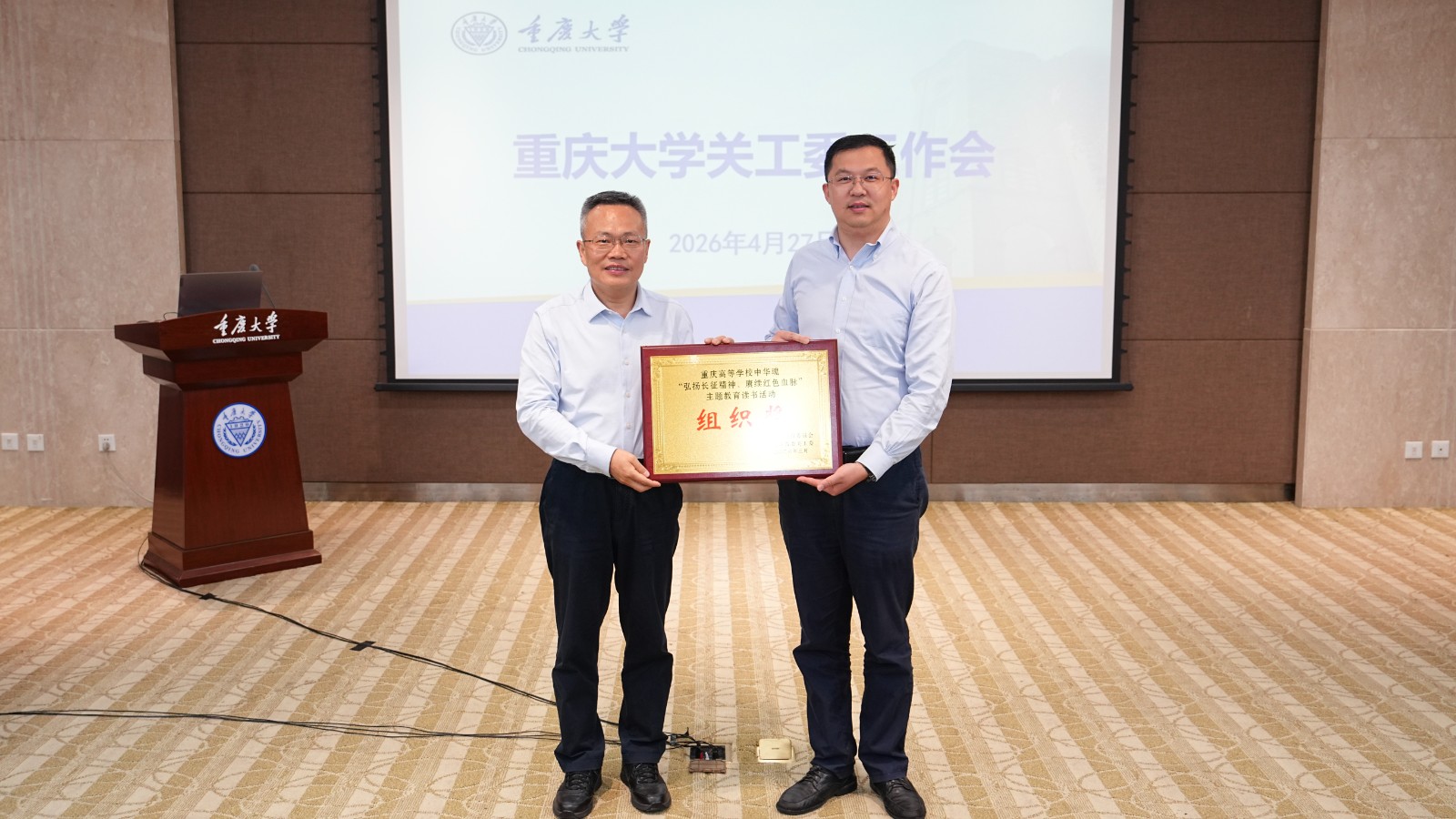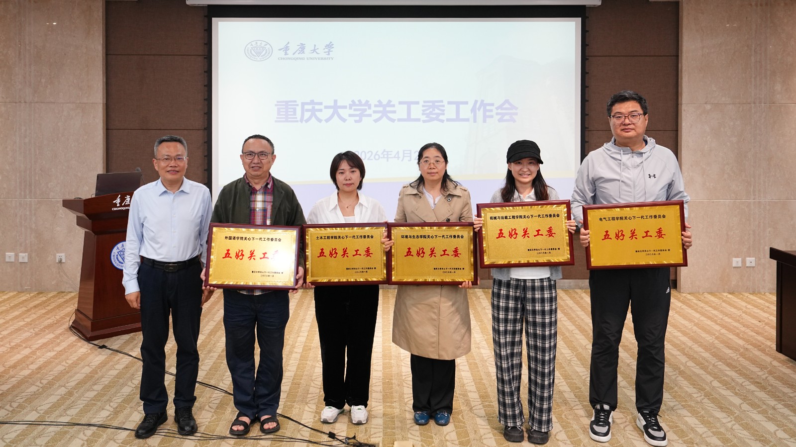2026年4月27日下午,重庆大学关工委2026年工作会在A校园主教学楼506会议室召开。校党委副书记、关工委主任冯业栋出席会议并讲话,校关工委常务副主任肖铁岩主持会议。校关工委委员、红岩报告团成员、委员单位负责人、各学院关工委负责人参加会议。