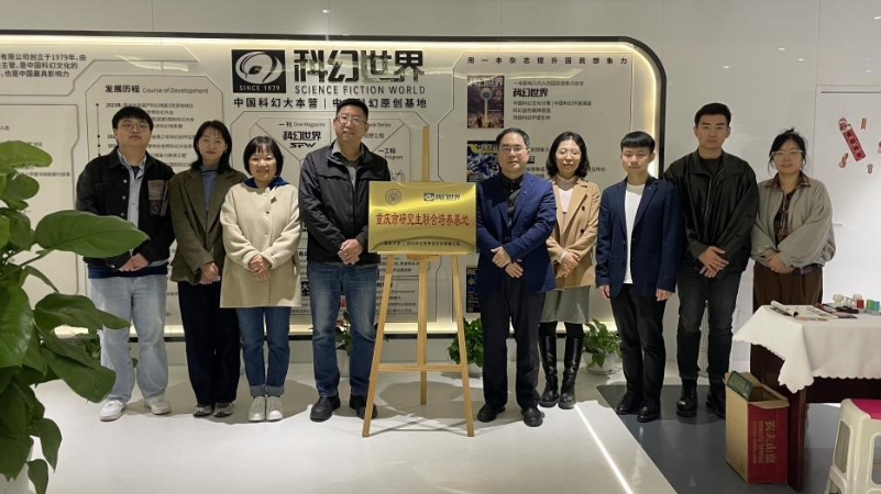 11月11日,重庆大学博雅学院与四川科幻世界杂志社有限公司(以下简称科幻世界)在《科幻世界》编辑部举办了“重庆市研究生联合培养基地”揭牌仪式暨未来发展座谈会。