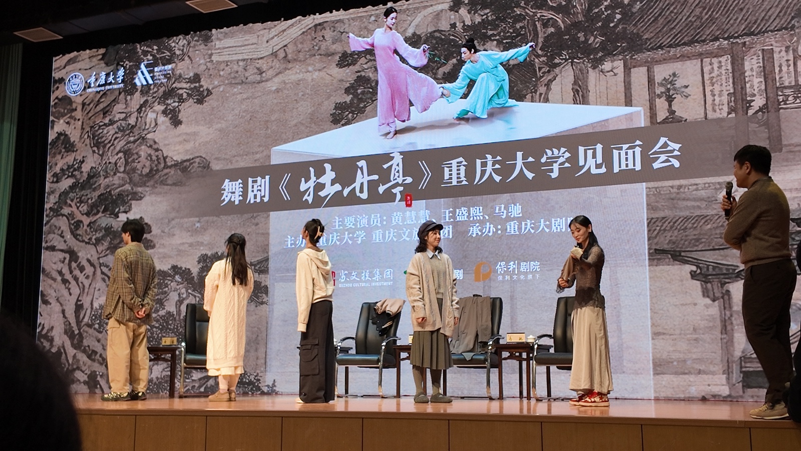 ​12月10日,学校联合重庆文旅集团、重庆大剧院共同举办舞剧《牡丹亭》重庆大学见面会。活动吸引600余名师生现场参与,线上观看达1.9万人次。重庆日报、上游新闻、华龙网等多家本地主流媒体聚焦报道。