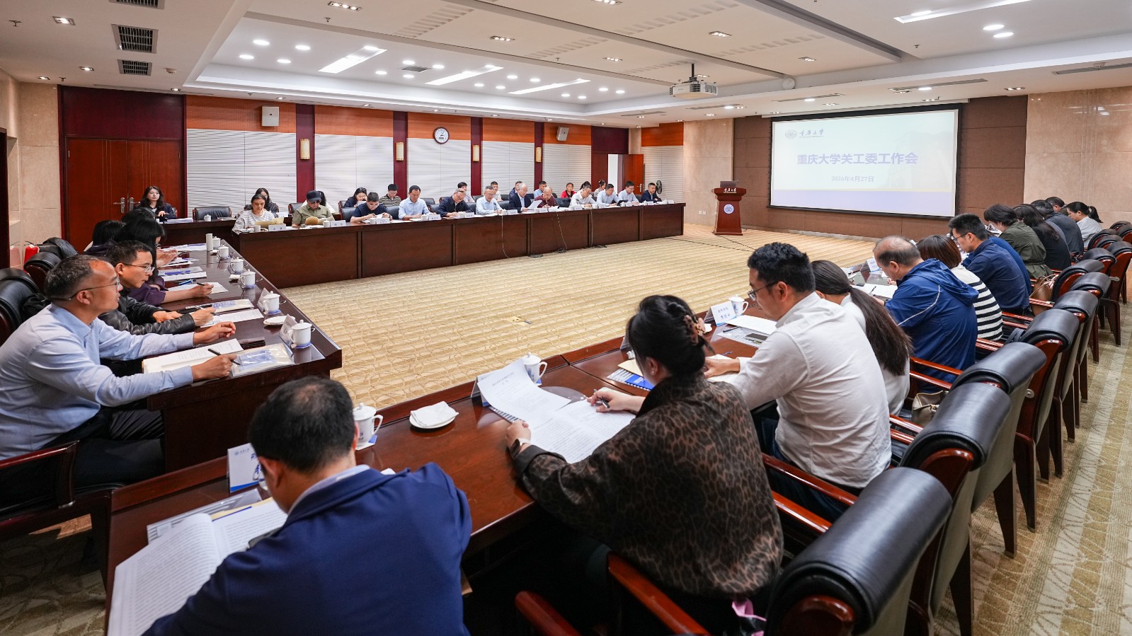 4月13日上午,大型仪器设备及公共服务平台2025年考核总结暨新一轮考核启动会在国际会议厅306会议室举行。学校党委常委、副校长饶劲松出席会议,实设处、发规处、人事处、科发院、计财处、房管处负责人参加会议,各学院、各平台负责人和优秀机组代表参加会议。会议由实设处处长钟代笛主持。