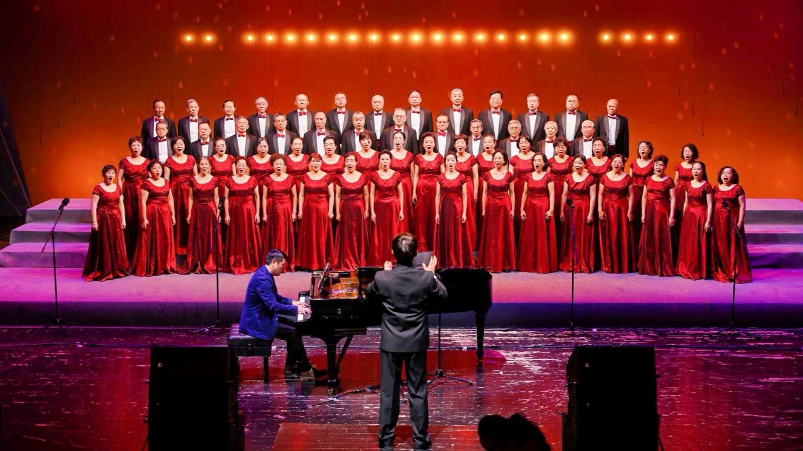 2025年12月14日,第三届“山城之声”展演活动在重庆国际马戏城温情启幕。本次活动以“鹤鸣山水 叠韵和合”为主题,汇聚全市多地文艺团体同台献艺。重庆大学老教师合唱团受邀参演,60余名退休教师齐聚舞台,以一曲经典的《黄水谣》唱响岁月风华,赢得现场观众阵阵掌声。