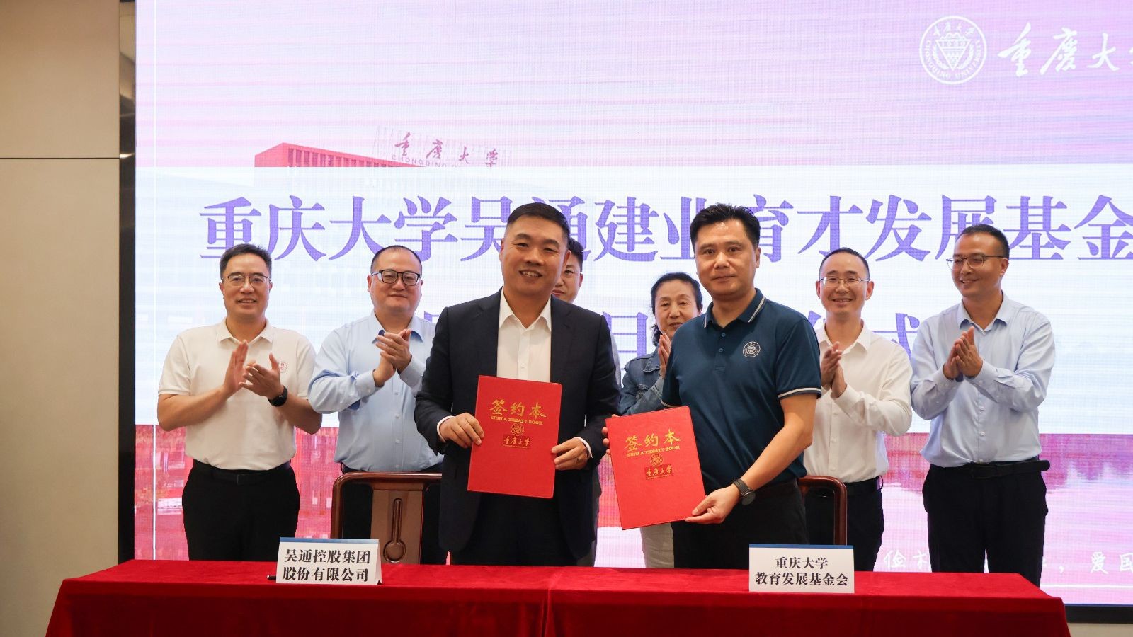 10月17日下午,重庆大学吴通建业育才发展基金捐赠项目签约仪式在重庆大学科学城校区虎溪校园信息技术科研楼B413举行。