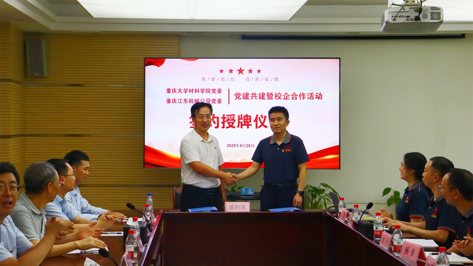 近日,重庆大学材料科学与工程学院(以下简称“材料学院”)前往重庆江东机械有限责任公司(以下简称“江东机械”),开展校企党建共建暨校企合作活动。材料学院党委书记王敬丰、江东机械党委书记、董事长兼总经理刘雪飞等出席。