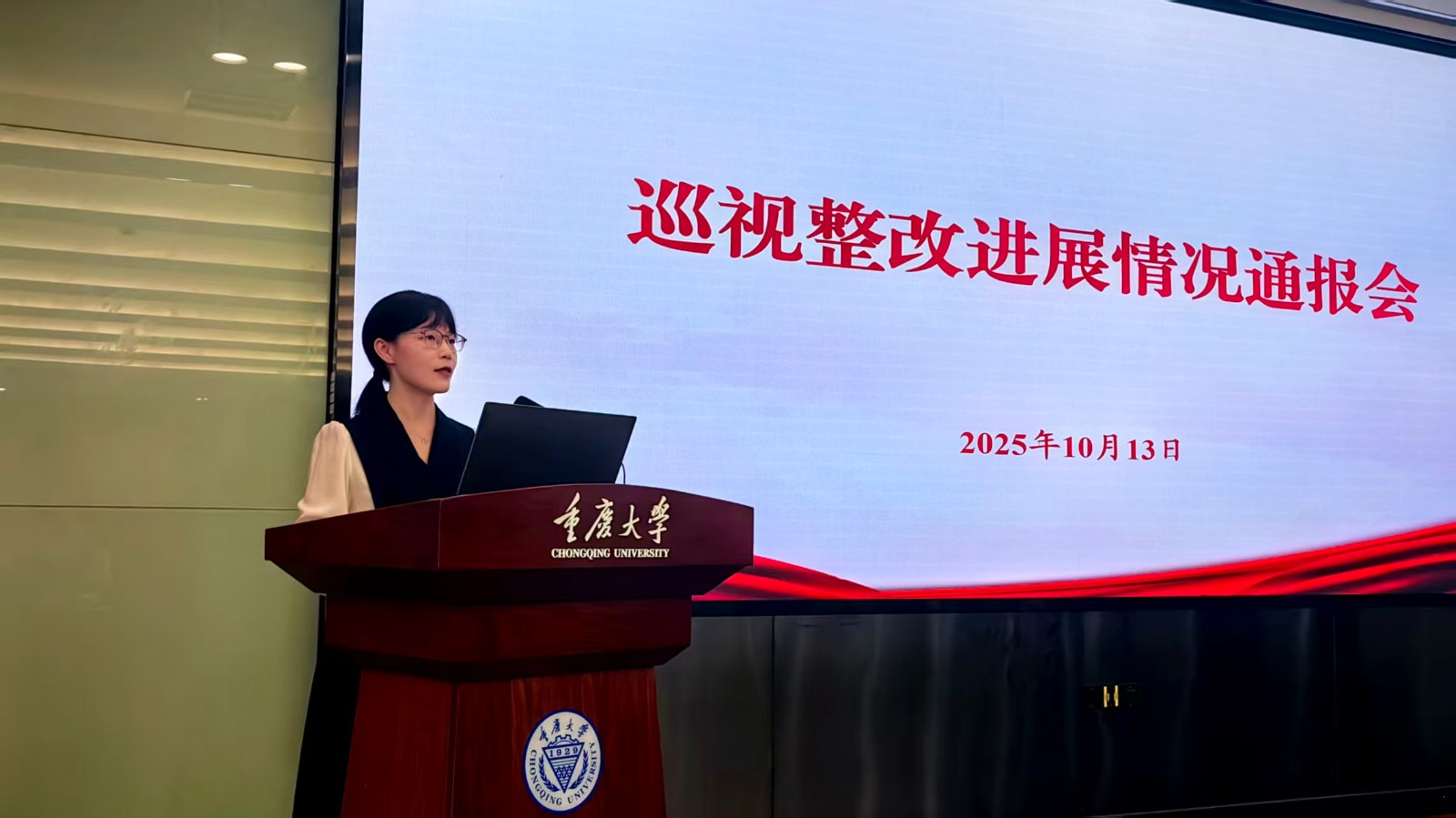 2025年10月13日下午,产业党委在主教504会议室召开会议,按照巡视工作有关要求,通报巡视“回头看”整改进展情况。产业党委书记关慧代表产业党委巡视整改领导小组作通报。