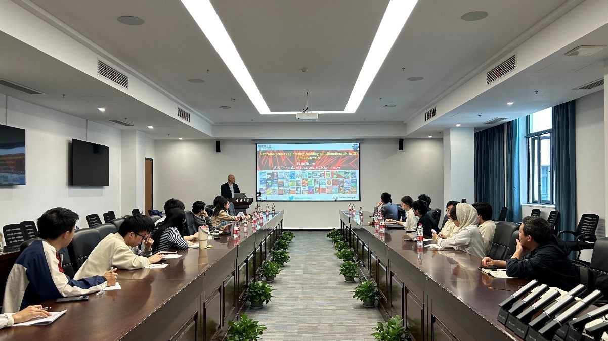 近日,应能源与动力工程学院卢阳教授邀请,欧洲科学院院士,比利时科学与艺术学院院士,斯特拉斯堡大学Paolo Samorì教授一行来到重庆大学,给师生们带来题为“分子工程实现二维光电器件的多功能特性”的学术报告。