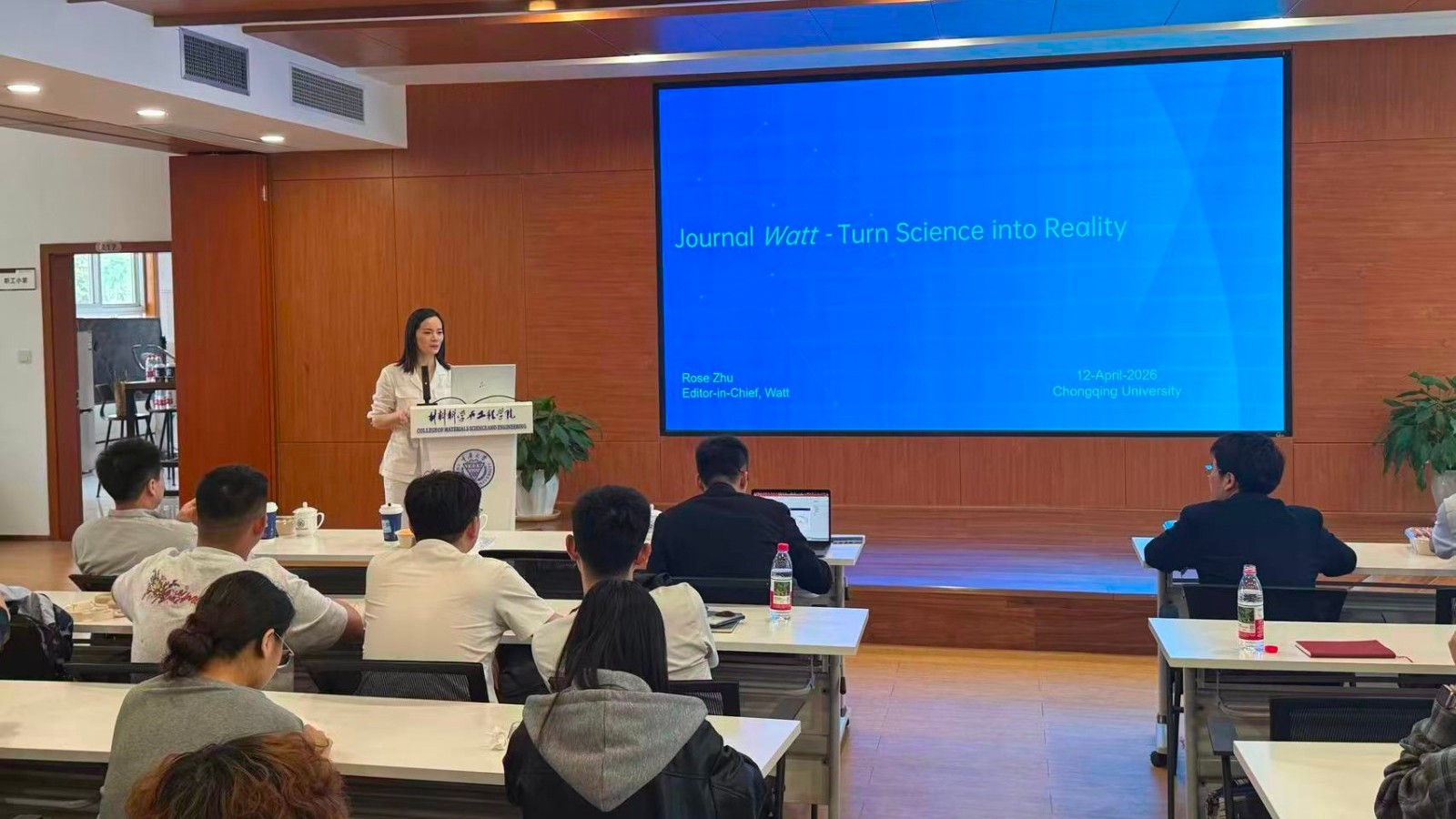 近日,重庆大学工程科学前沿讲坛在B校园材料楼212报告厅举办。本次讲坛以高比能电池、电催化、电解液设计、新型储能材料等为主题,特邀七位国内电催化、电池领域知名专家及国际顶刊主编作系列学术报告。