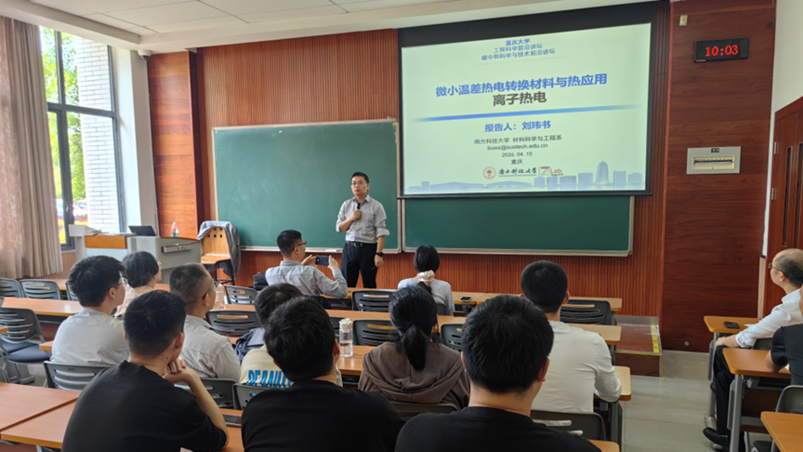 近日,重庆大学工程科学前沿讲坛暨碳中和科学与技术前沿讲坛在虎溪校区D1148教室举行。本次讲座以“微小温差热电转换新应用——离子热电”为主题,特邀英国皇家化学学会会士、南方科技大学材料科学与工程系教授刘玮书担任主讲嘉宾。