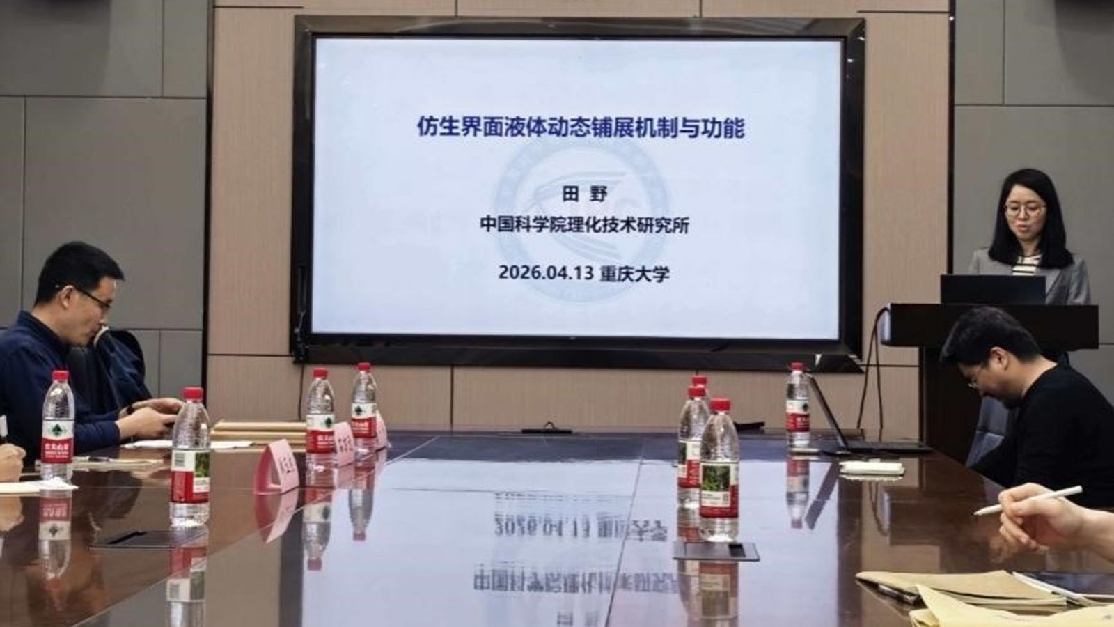 近日,应能源与动力工程学院李猛教授邀请,中国科学院理化技术研究所田野研究员、武汉大学陈朝吉教授来校交流并作工程科学前沿讲坛学术报告。田野研究员以“仿生界面液体动态铺展机制及功能”为主题,陈朝吉教授以“木质生物质结构重构与增值利用”为主题,为现场师生带来一场前沿学术盛宴。
