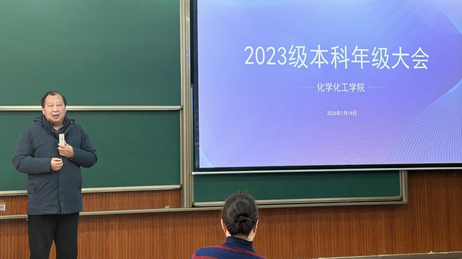 1月14日下午,化学化工学院在虎溪校园D1236教室召开2022级本科生年级大会。学院党委副书记、纪委书记李泽全及全体2022级本科生参加会议。会议由辅导员陈星辰主持,围绕学业总结、未来规划、毕业准备与安全教育等方面展开,引导学生明确发展方向、扎实完成学业。